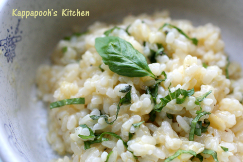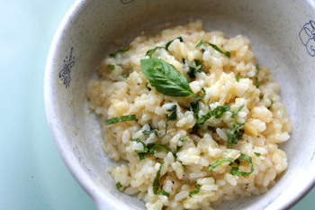 *バジルとチーズの卵がけごはん・リゾット風*
