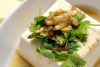 唐辛子をすり鉢で擂っておき、パクチーを茎ごとみじん切りにしたものを加えさらに擂りあわせ、そこにナンプラーとレモンを絞り入れ、ニンニクをつぶしたものを浸して、しばらくなじませておきます。