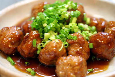 これでお料理を作る・・・・う~ん考えた末、まずは肉団子を作って、香酢で和えてみました。