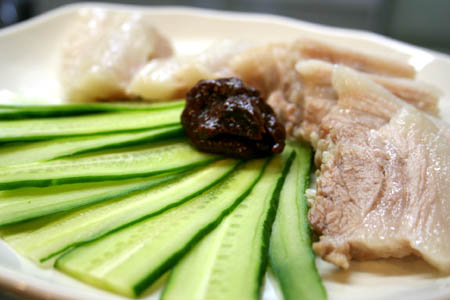 一時間ほどゆでたら、とりだし、好みの厚さに切り、皿に盛り付ける。