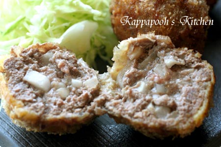 中にはひき肉のほかに飛騨牛のカルビ肉を細かく切って入れてあります。