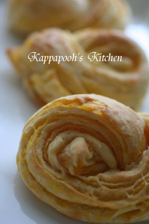 オレンジシートを折り込んで、バターもたっぷりのパンです。