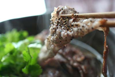 牛肉(これは絶対牛肉がいい気がする)を炒めて一部、半生のものをスープに入れて少し煮込みます。