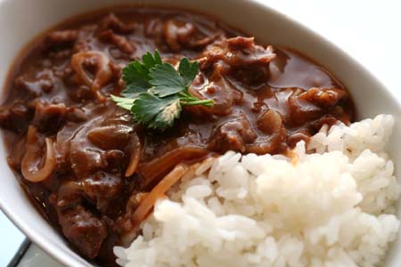 いつもは市販のハヤシライスのルーで作りますが今日は、デミグラスソースを使って作りました。