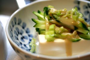 きゅうり・大根(生)の上に豚ばら肉をさっと茹でたものを乗っけて。