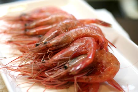 フライパンにオリーブオイルをひき、みじん切りしたニンニクを炒め、身を内側にしてエビを並べ、白ワインを振りかけ、蓋をして蒸し焼きにします。