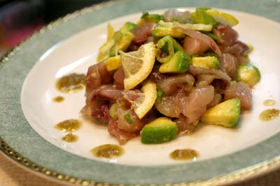 *真あじとアボガドのタルタル、柚子コショウ風味*