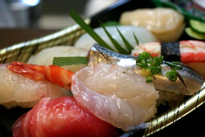 うに・ほたて・アジ・かに・ボタンエビ・まぐろ・はまち・鯛・イカ。