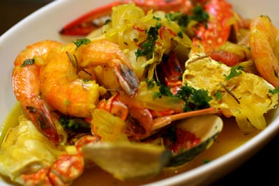 スーパーに渡り蟹が出回ってきたので他の魚貝類も用意して昨夜はブイヤベースにしました。
