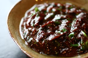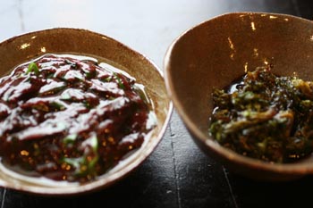 味噌が濃いので、少しづつご飯の上に乗せて食べます。