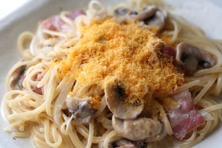 *ミモレットで飾ったクリーム系パスタ*