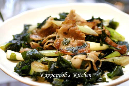 *豚ばら肉とワカメの炒め物*