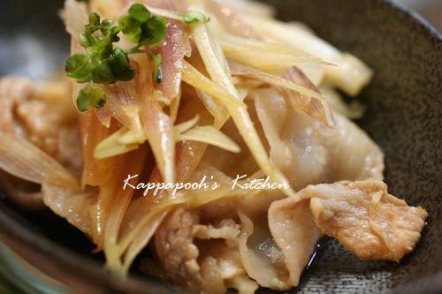 *豚バラとみょうがのからしポン酢和え*