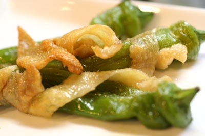 *鶏皮と万願寺しし唐のグリル・柚子ソルトで*