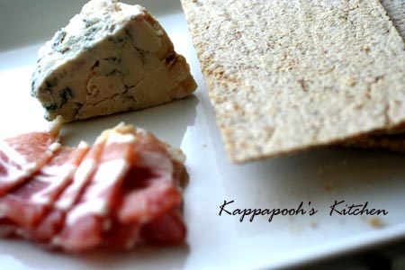 ゴルゴンゾーラチーズとパンチェッタ、クリスプブレッドガーリックです。