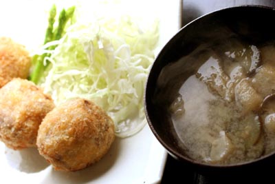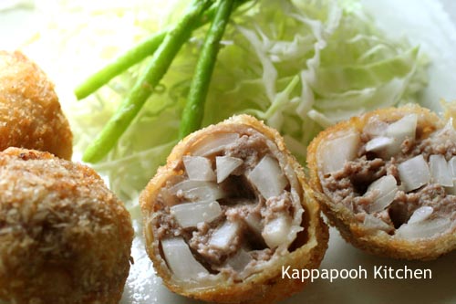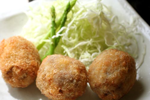 で、夫がダイエット中にもかかわらず、ミンチカツ(メンチカツ?)作りました。お昼だからいいかなと思って。