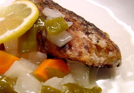 鍋に、水、和風だし、鶏がらスープ、酒、砂糖、酢で甘酢スープを作り、細かく切った玉ねぎ、ニンジン、ピーマンを加えて、歯ごたえが残る程度に煮て、水溶き片栗粉でとろみをつけて、ブリに添える。