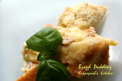 甘いものはちょっと辞めて、同じく残っていたツナと合わせておかずパンプディングにしました。