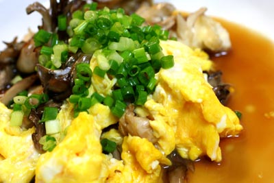 舞茸を塩・コショウで炒めて、別のフライパンで、たまごをふんわり焼いて(味付けなしです)合わせて、ポン酢にさらに酢を足して、ごま油をちょっと加えて、かけました。