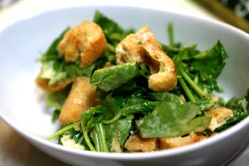 三つ葉は生で。油揚げはオーブントースターで焼いて、切って三つ葉とあわせます。