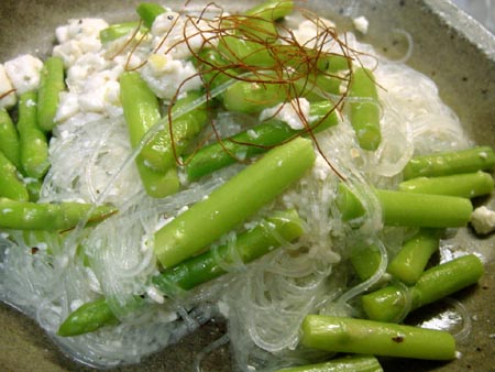 *アスパラと春雨・豆腐の香り炒め*