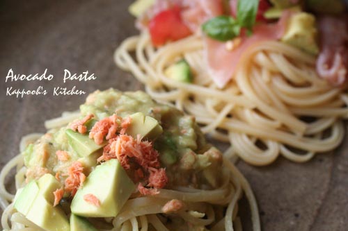 完熟アボガドをもうそろそろ使わなくてはと、本日のランチのパスタにしました。