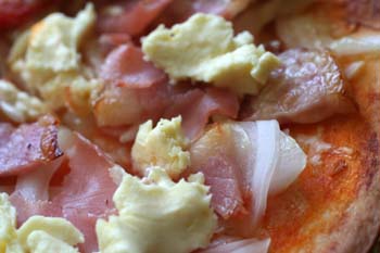 今日は玉ねぎと、ベーコンと生ハム、そしてクリームチーズです。