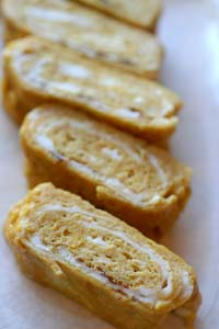 お稲荷さんの煮汁を加えて玉子焼きを作りました。