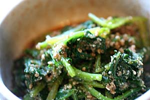 すりゴマ、酒、砂糖、醤油、酢で和えました。