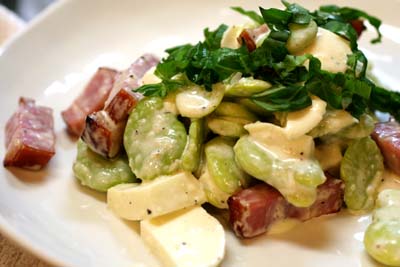 *そら豆・ベーコン・モッツァレラチーズのサラダ*
