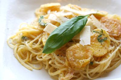 *ズッキーニとバジルの入ったカルボナーラ風パスタ*