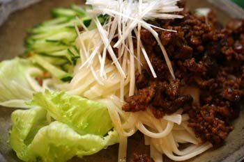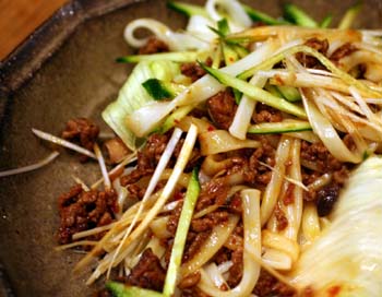 このうどんは、アレンジ麺としても使いやすいので、こんなジャージャー麺でも