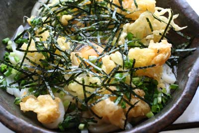 今日はこのためにわざわざ天かすを作りました。おっきめのものになって、ちょっと贅沢なものになってしまいました。