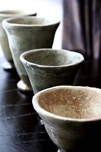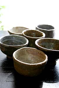 斜めにならないように大アサリを並べて、酒を八分目くらい注いで、火にかけ、沸騰して煮立ったら、あさつきを散らし、最後に醤油を少しづつたらしてもう一度煮立たせ、できあがり。