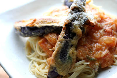 *フライドナスとトマトソースのパスタ*
