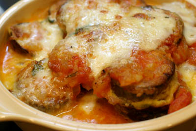 今まで、こんなようなものを作っていましたが、これはナスに事前に粉をつけ、たまごとバジルをつけて焼くことで、ナスの触感と風味が残り、それとトマトソースが合わさってとってもおいしかった!!