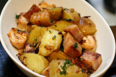 *ジャガイモとブロックベーコンのバター炒め*