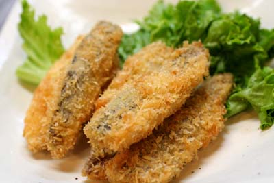 もう一品はアジフライ。骨は粉をまぶして骨せんべいでいただきました。