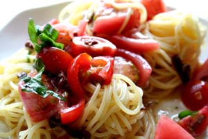 トマトのそれぞれの味が次々と口の中で入れ替わって楽しいパスタになりました。