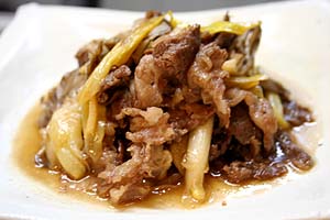 牛肉、ねぎを入れ、煮る。