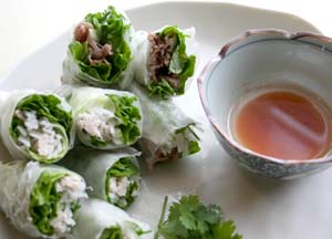 今日は、パリのお店を真似て、牛肉(パリのお店のオリジナルで、秋巻きというようです)と、鶏肉の2種です。