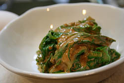 赤味噌、マヨネーズ、酒、すりごまをあわせてゆでた菜花をからめる。