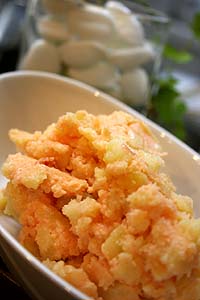マヨネーズ、酒少々、明太子中一本をあわせたボールに