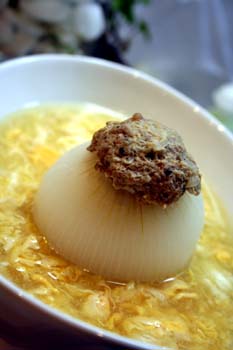 少量の玉子、少量の小麦粉を加えよく練り合わせて、たまねぎ本体に詰めます。