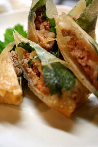 混ぜ合わせておきます。春巻きの皮に大葉を乗せ、ひき肉類