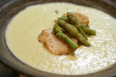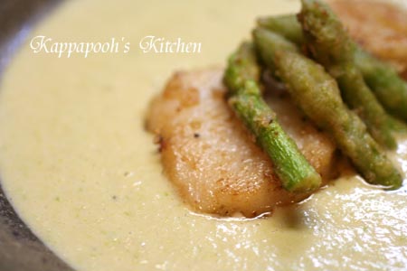 *ホタテのバターガーリックソテー・アスパラクリームソース*