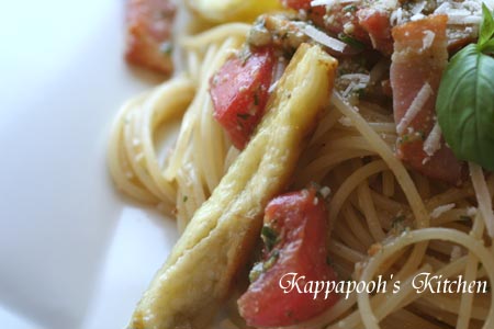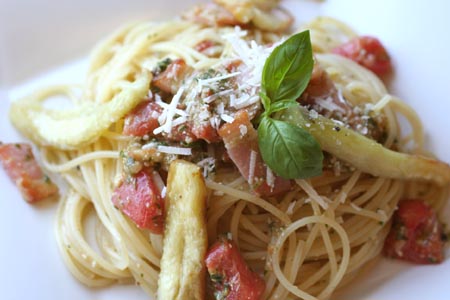 *焼きナスとバジルトマトの冷製パスタ*