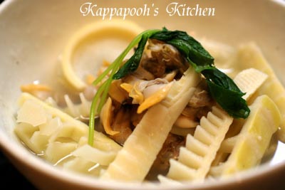 筍とあさりを酒と白だしで煮ただけですが、筍の香りがよくって生のあさりでいいだしも出て、スープが実に美味しいです。