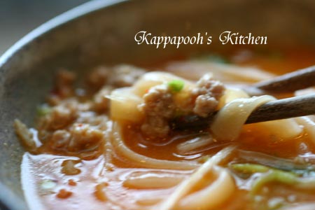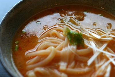 唐辛子が入って、見た目もきれいな麺です。うどんなんですけど。