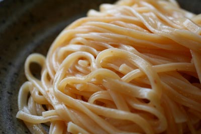 先日友達からもらった手延べ麺の中に唐辛子入りの麺があったのでそれを美味しく食べる方法を考えてました。